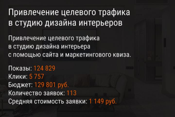 Получить целевые заявки на дизайн интерьеров со средним чеком от 100 000 руб.