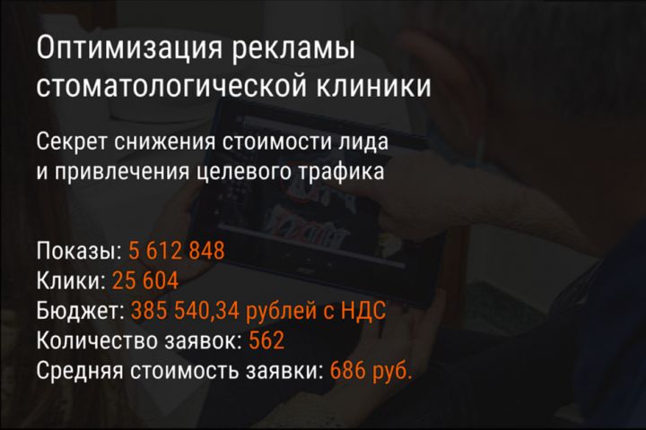 и ставим более амбициозные задачи. На данный момент планируется снижение стоимости заявки по прибыльным услугам, т.е. протезированию и имплантации зубов.