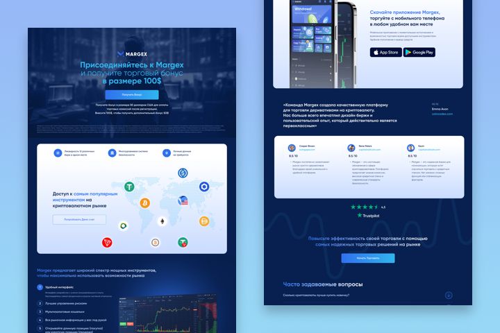 Верстка лендинга на Tilda для платформы Margex по дизайн-макету в Figma