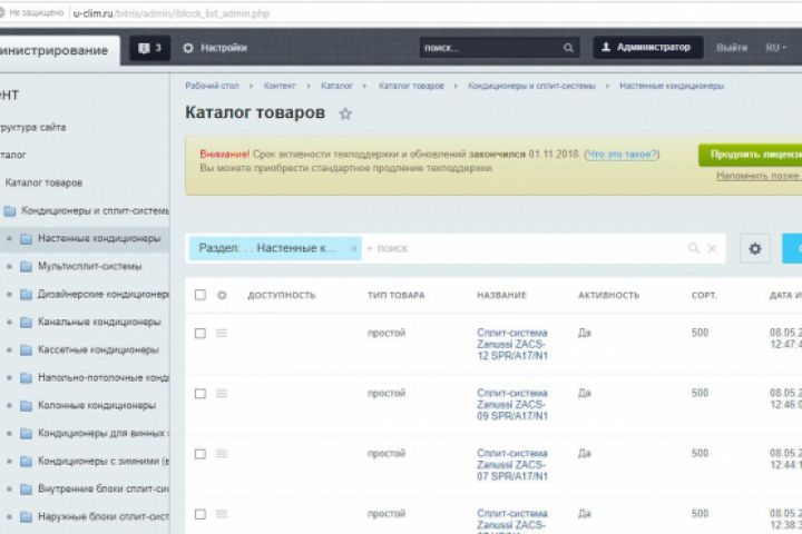Наполнение и/м климатич. оборудования на битрикс