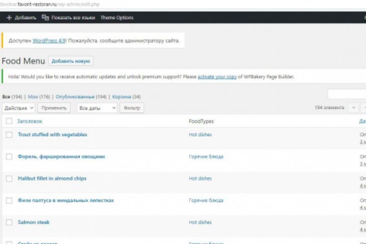 Меню для сайта ресторана (вордпресс)