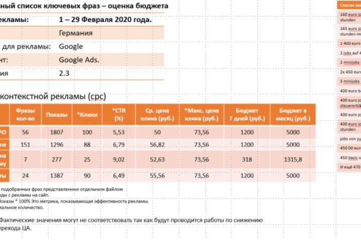 Предоставлен базовый список ключевых-фраз. Рекламодатель составил