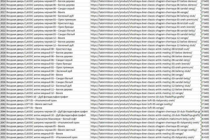 Парсинг двух сайтов с товарами в среде Python. Данные взяты из открытых источников. На изображении пример полученных данных с двух сайтов. В прикрепленном файле парсинг одного сайта