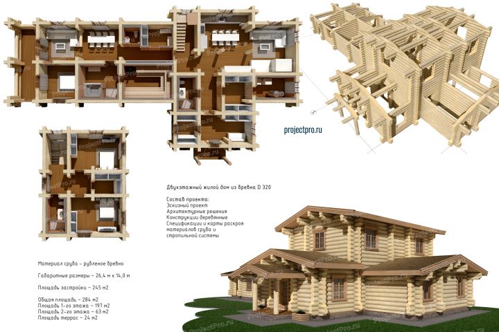 C-010. Один из проектов деревянных домов для компании, занимающейся рубкой домов из бревна большого диаметра. Индивидуальный проект.