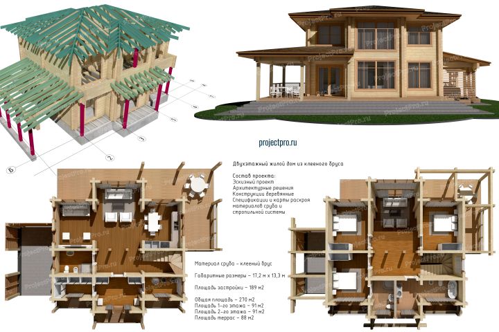 Индивидуальный проект дома из клееного бруса для компании производителя деревянных домов.