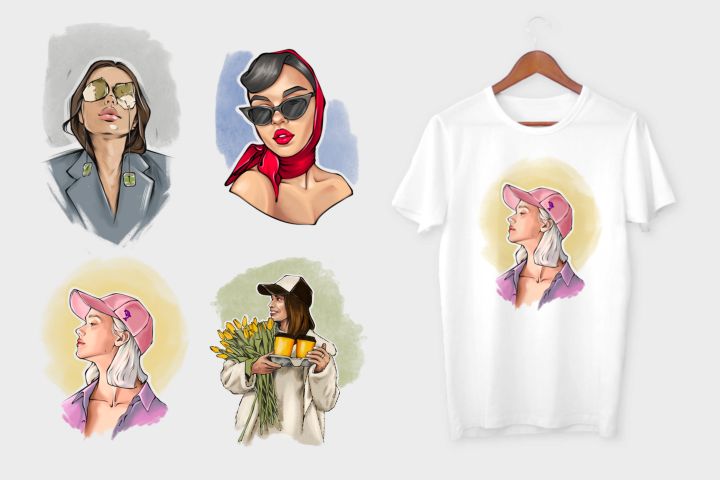 Серия принтов для футболок - девушки в технике диджитал пастель #принт #портрет #фэшниллюстрация #девушка #стильнаяиллюстрация