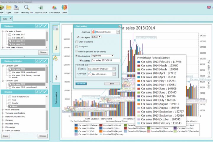 База данных: MS SQL. Хранилище данных: MS SSAS (OLAP кубы). Язык разработки: ASP C#. Framework: компоненты Developer Express ASP.