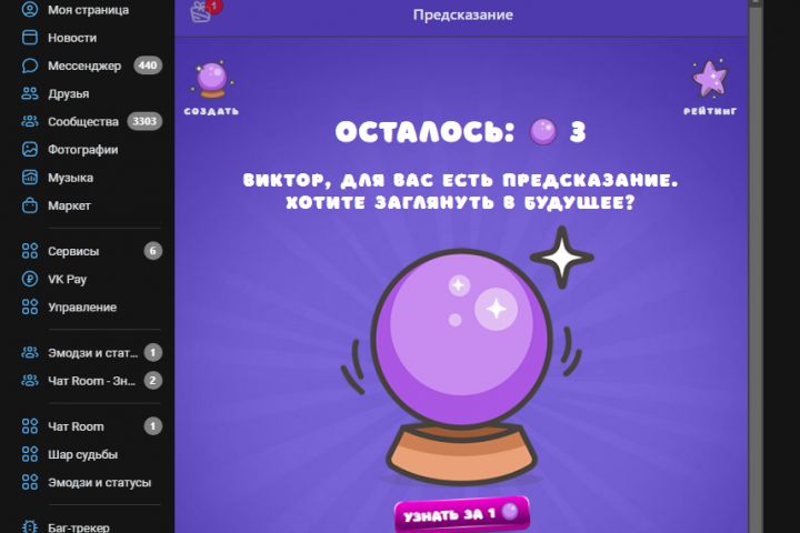 Приложение вконтакте Шар судьбы