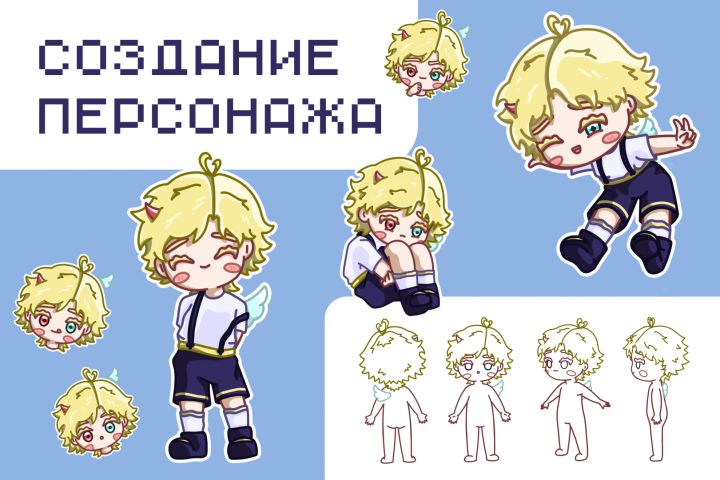 Работа заключалась в создании внешнего вида персонажа по определенным критериям. Была оформлена цветовая гамма, запоминающиеся позы и наглядный вид со всех сторон.