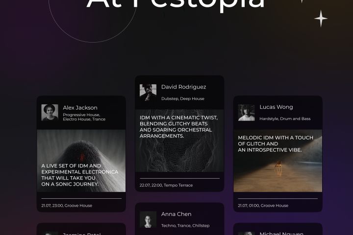 Интерактивный блок с программой мероприятий: Пользователи могут просматривать расписание событий, мастер-классов и выступлений, а также добавлять их в свой календарь.