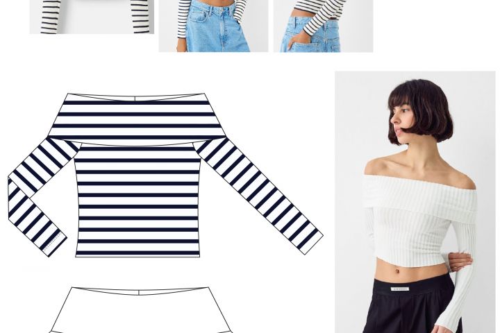 Отрисовка скетча трикотажного топа, повтор принта по фото