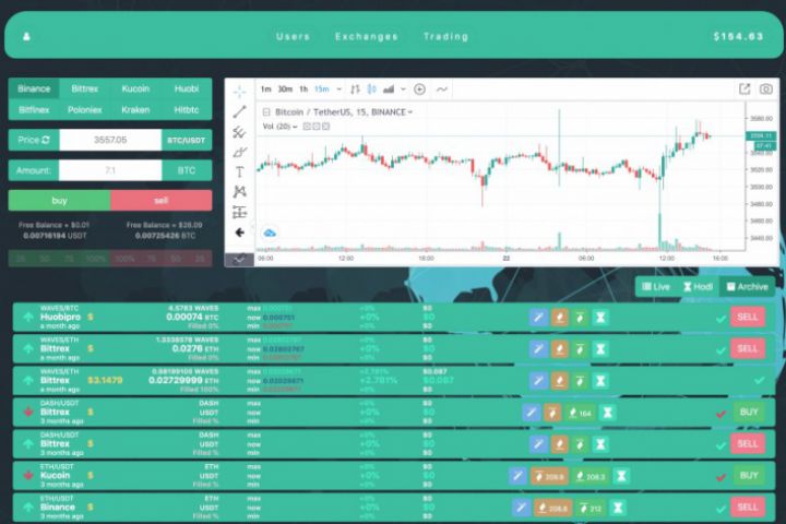 Трейдинг платформа для 8 популярных крипто-бирж. Позволяет работать со всеми аккаунтами в едином интерфейсе, а встроеный робот помогает закрывать сделки с профитом. В системе реализован алгоритм автоматического закрытия ордера на пике цены.