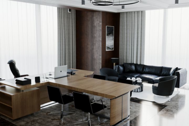 Дизайн проект кабинета руководителя, площадь 100 кв.м. - Кабинет - Комната отдыха - Санузел - Гардероб