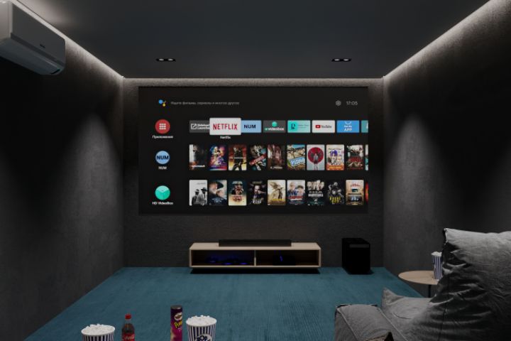 Дизайн проект кино-кафе. Помещение 230 кв.м. на цокольном этаже жилого дома.