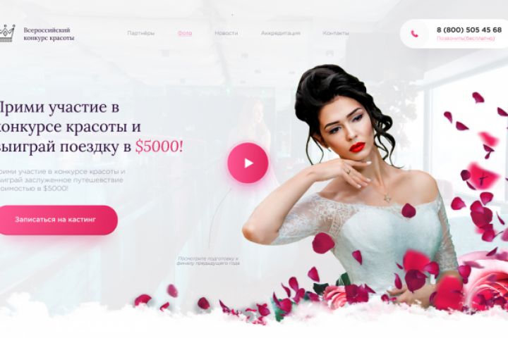 1 экран сайта для конкурса красоты(Landing page)