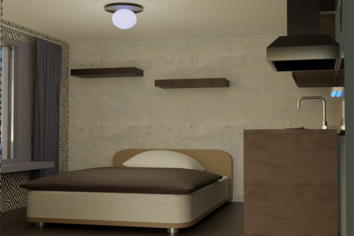 производилась работа над правильным положением материалов и текстур, работа с геометрией, также материалом стекла и освещением.