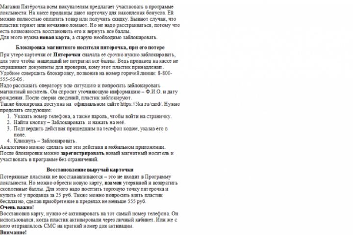 Как заблокировать выручай-карту от магазина пятёрочка при её утери.