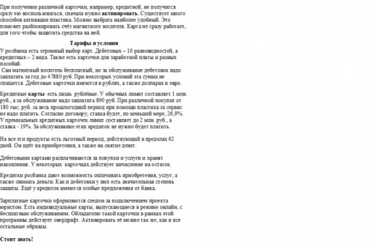 Как активировать различные карточки росбанка, чтобы начать пользоваться им.
