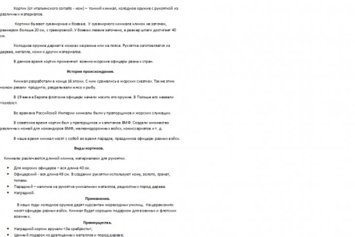 Описание, характеристики кортика.