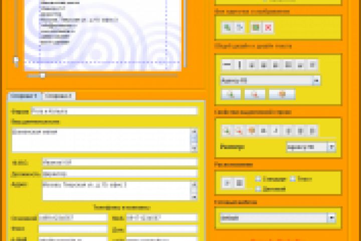 Встраиваемый Java-applet (SWING), позволяющий в браузере создавать наброски визиток, с нуля либо редактированием готовых шаблонов. Клиентская часть в готовности бета-версии. Шаблоны добавляются независимо от кода в xml-конфиге. Серверная часть создается индивидуально.