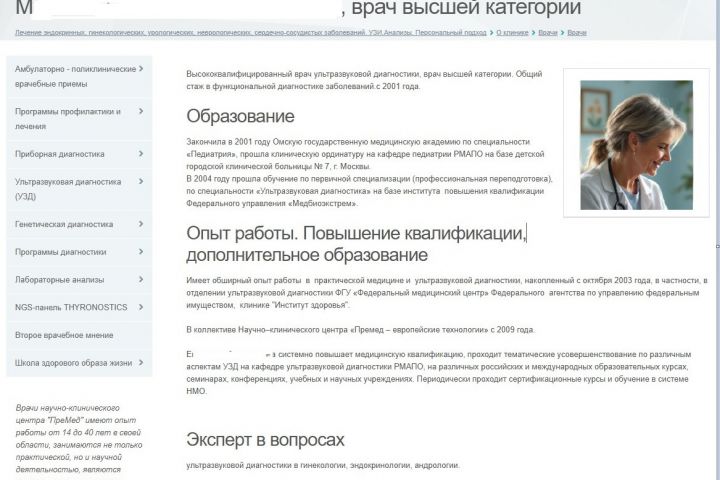 Резюме врача, сайт клиники ПРЕМЕД