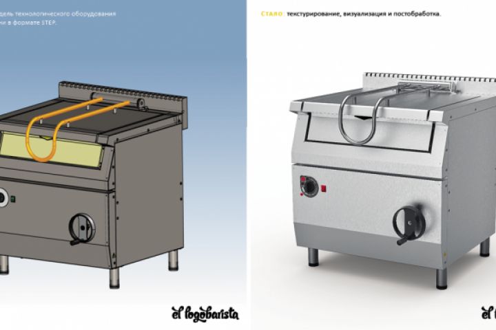 Текстурирование, освещение, визуализация и постообработка модели для использования в полиграфии + рендер-360° для демонстрации оборудования на сайте производителя.