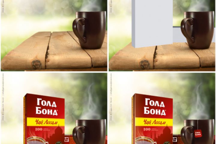 Раскадровка коллажа для имиджевого макета чая Gold Bond