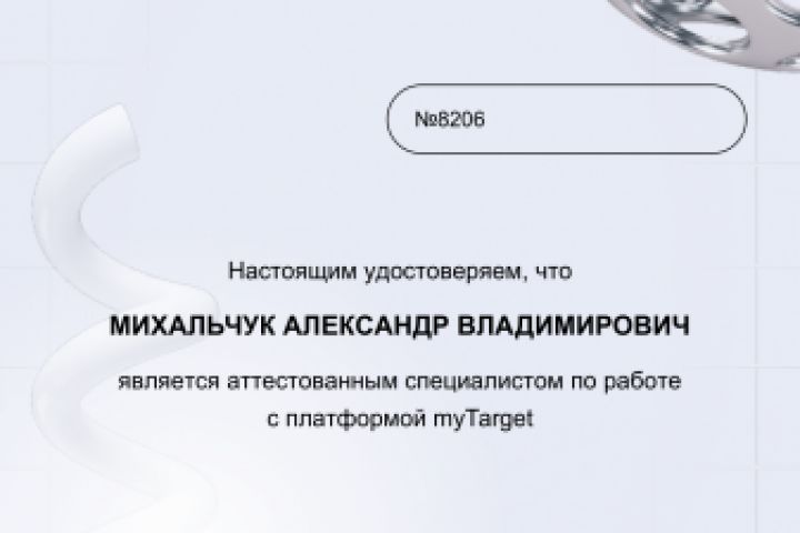 Сертификат MyTarget