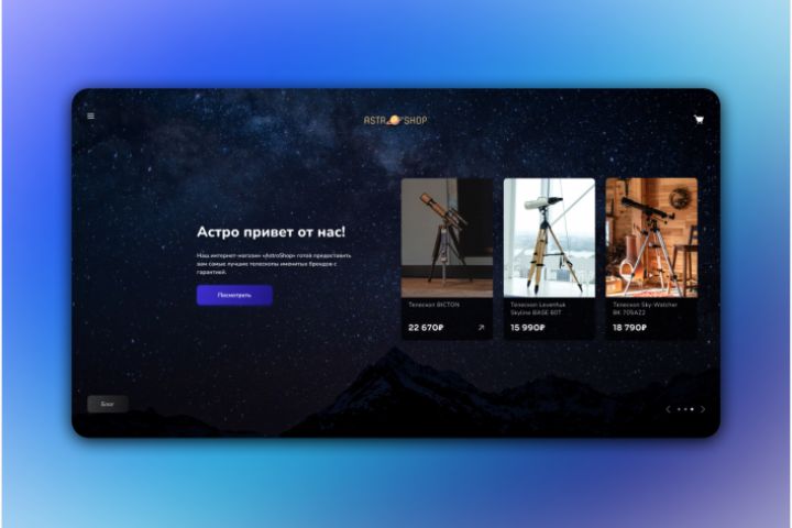 Концепт дизайна для магазина «AstroShop», специализирующего на продаже телескопов.