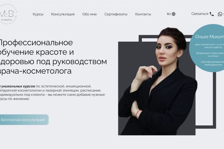Необходимо было создать лэндинг по оффлайн обучению косметологии с учетом айдентики, обновить логотип.