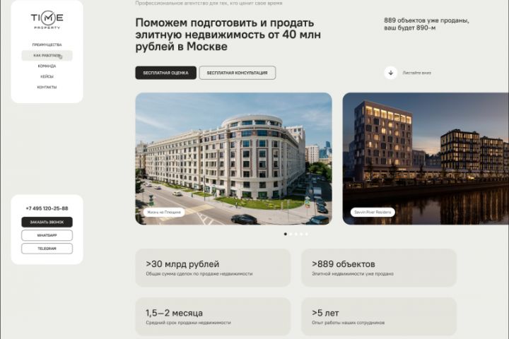 Провели аудит компании, выявили основные преимущества, после чего сформировали продающий копирайтинг по болям клиентов. Изучили конкурентов, чтобы выделиться на их фоне выбрали дорогой монохромный стиль.