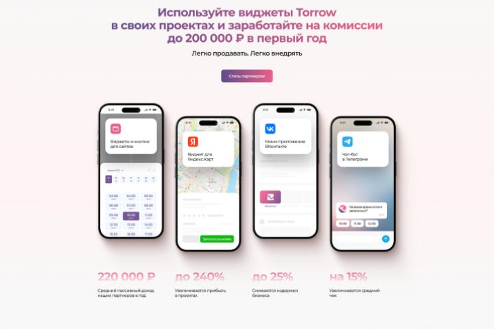 Torrow — сервис для интеграции виджетов, пришел с задачей привлечь ЦА интеграторов, консалтеров и агентств разработки, которые будут продавать продукт конечному бизнесу.