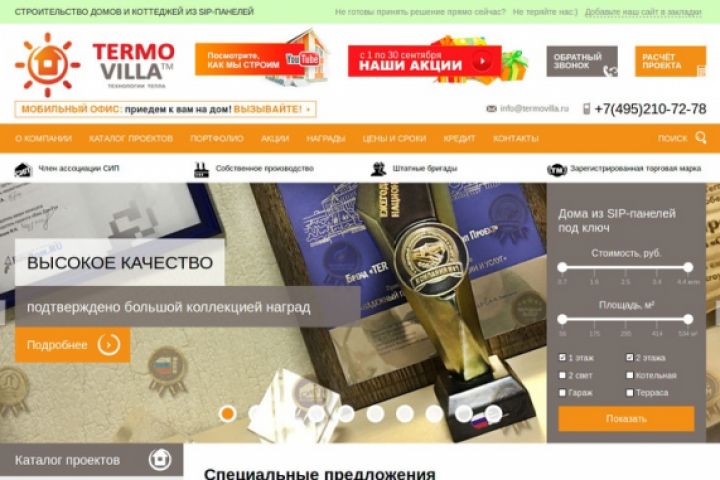 Доработка сайта по строительству домов termovilla.ru