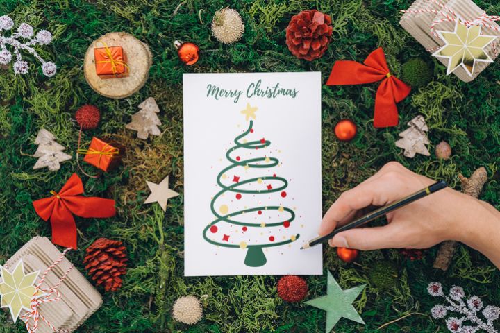 Открытка на рождество с елью