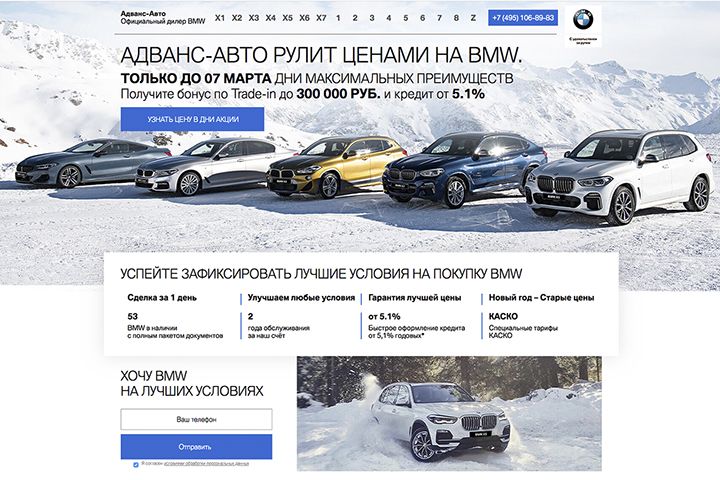 Лендинг для компании занимающейся продажей BMW Стоимость от 15 000 рублей. Включено: Дизайн Верстка Настройка почты Установка сертификата безопасности Клиент получил готовый к работе продукт.