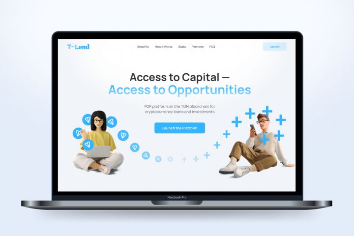 Landing Page Fin-Tech сервиса по инвестициям на платформе TON «T-Lend» сделанный в фирменном стиле экосистемы Telegram