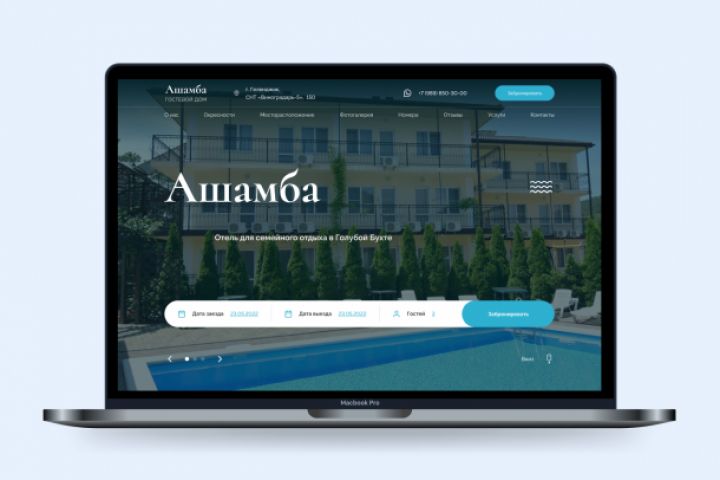 Разработка дизайна сайта отеля в Геленджике «Ашамба» с бронированием номеров