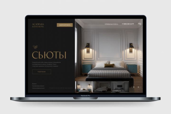 Минималистичный дизайн сайт High Luxe апартаментов «Academia Suites Hotel».