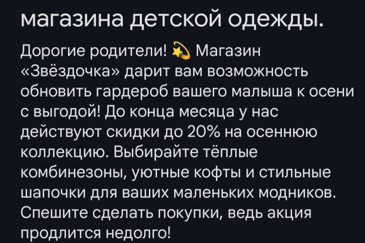 Рекламный текст для магазина детской одежды