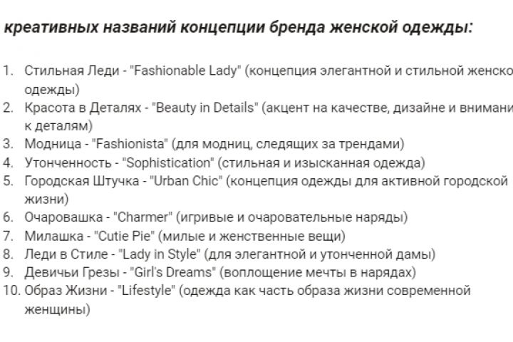 10 креативных названий концепции бренда женской одежды