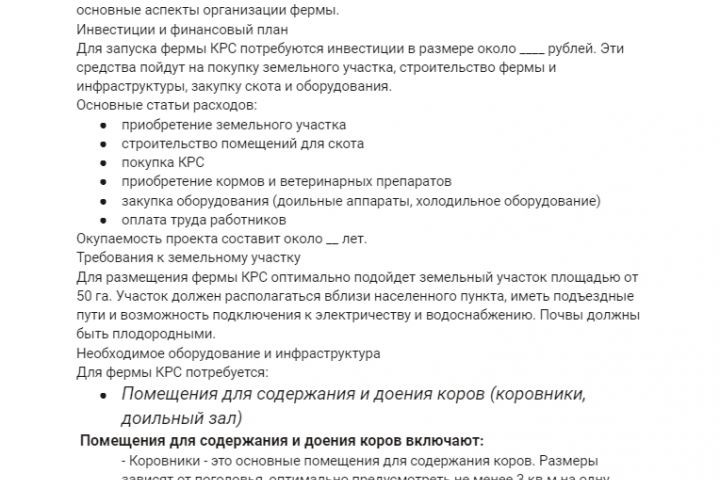 Бизнес-план КРС