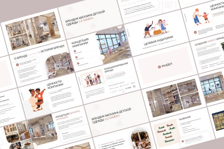 Был разработан стильный дизайн для брендбука для детского бренда одежды Le Samedi, который выполняет все функции брендбука и презентации бренда.