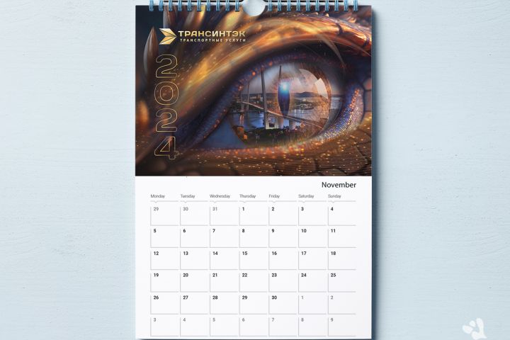 Разработка ежегодного новогоднего календаря, в рамках многолетнего сотрудничества с компанией ТрансИнтэк, г. Владивосток