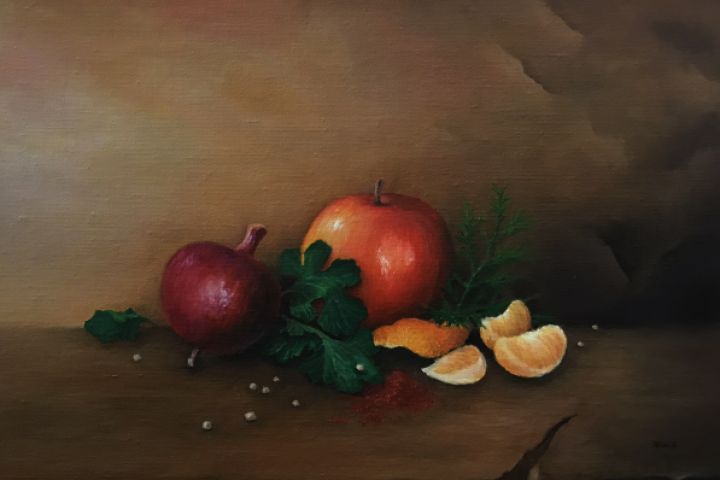 На фото картина "Первый натюрморт". Композиция авторская. Картина представлена в качестве примера. Цена договорная. Стоимость стартует свыше 6000 рублей за полотно. Профессиональные холст и масло. Цена договорная. В настоящий момент заказ картин не принимаются. Предложение только из наличия собственных работ.
