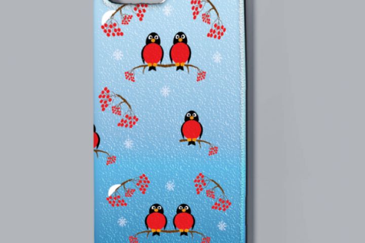 Принт на чехол телефона "Снегири"