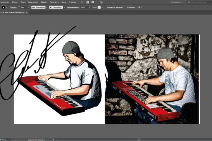Скриншот с рабочего пространства. Работа окончена. Клавишник группы AFTER ALL на отрисовку этого персонажа было затрачено около 1-2 дней.