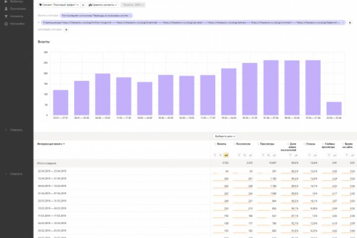 Но и на этом ещё не всё, пришлось подключать точечную аналитику для основных страниц сайта, так как конкуренция на выдаче слишком серьезная, чтобы разовые работы по оптимизации страниц дали результат.