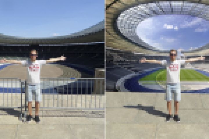 На фоне нового стадиона.