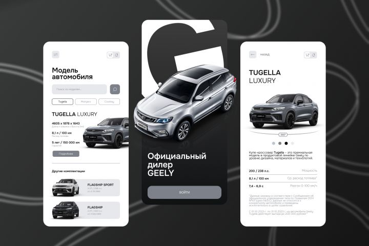Дизайн приложения, для автомобильного дилера GEELY.