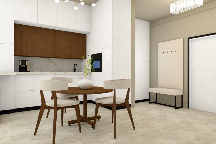 3D визуализация дизайн-интерьера кухни-гостиной
